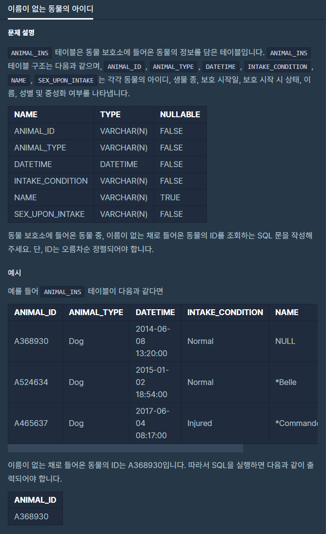 IS NULL을 쓸 수 있는지 묻는 문제.